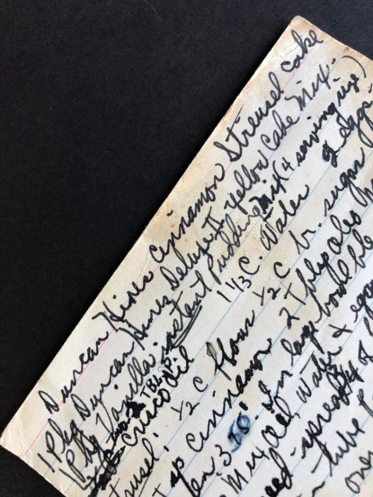 The recipe as she wrote it is titled Duncan Hines Cinnamon Streusel Cake so I don’t know if she got this recipe from a magazine or the cake mix box.